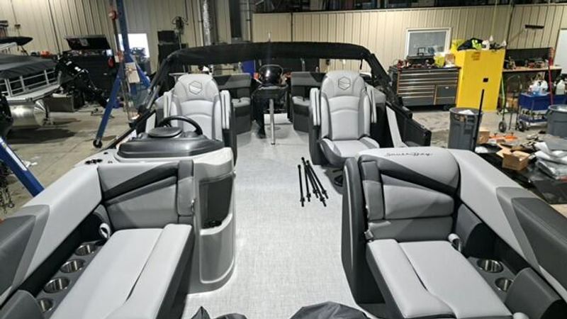 2026 Southbay 224RS30 LE. Introducing the latest addition to our Southbay lineup, designed to deliver exceptional value without compromising on quality. The 224RS30 LE boasts top-notch construction techniques and premium materials, setting it apart from other entry-level pontoons. With its reinforced splash fins, stainless steel mid-back reclining helm chairs, and innovative V-lite performance deck, this model offers unparalleled performance and comfort. The 224RS30 LE is packed with features, including a black out trim package, power assist steering pump, and RGB underdeck lights, making it an exceptional choice for those seeking a high-quality pontoon experience without the hefty price tag.