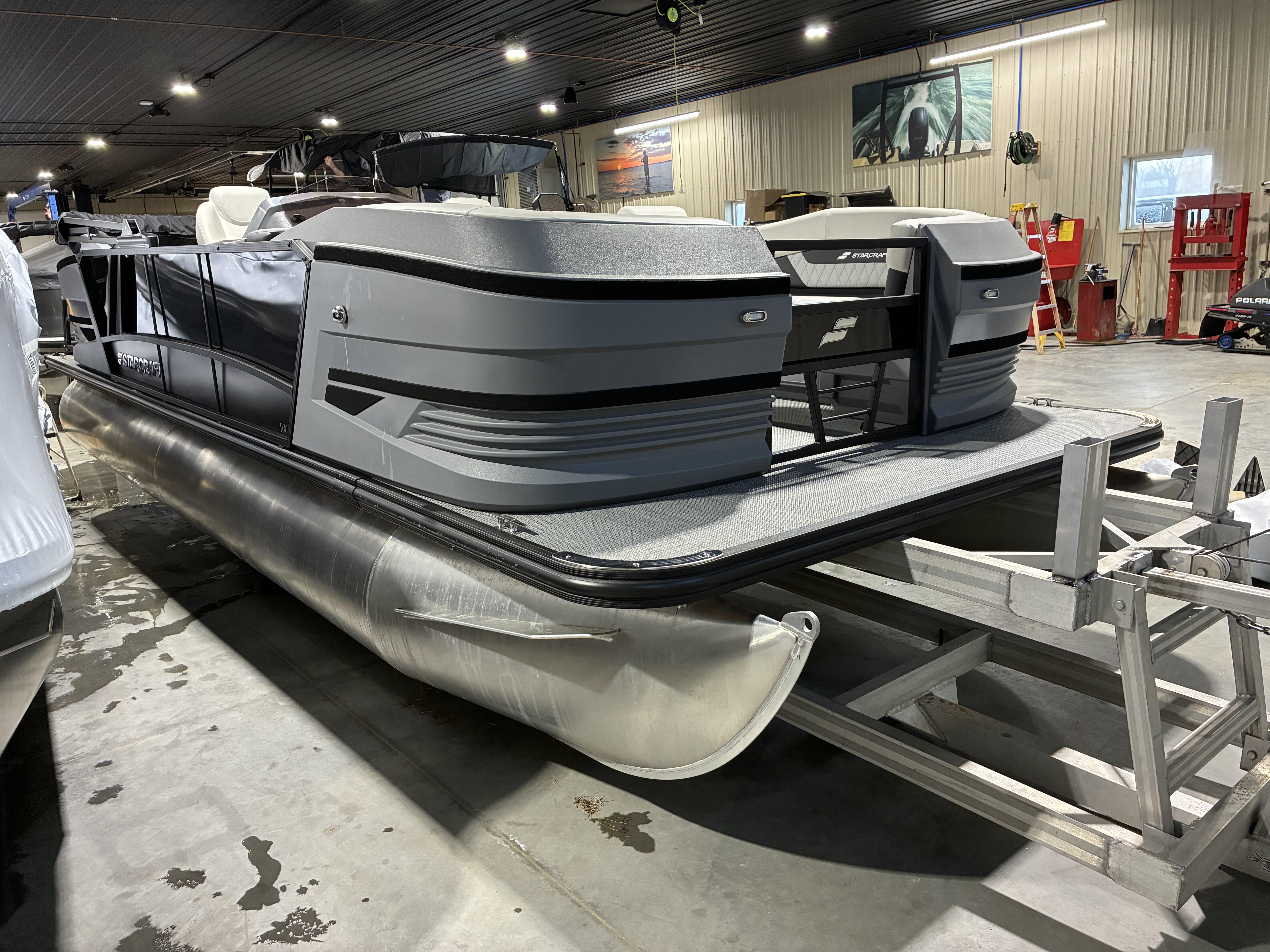 2026 STARCRAFT VX22QDH Southbay LE. Introducing the newest addition to our lineup, designed to deliver unparalleled value and performance on the water. Built with premium materials and construction techniques, this pontoon boasts exceptional build quality, durability, and stylish aesthetics. With its reinforced splash fins, stainless steel mid-back reclining helm chairs, and v-lite performance deck, the STARCRAFT VX22QDH Southbay LE stands out from the competition, offering a luxurious experience without the hefty price tag. This exceptional model is packed with features, including a luxury package, cover, and high-end electronics, making it an unbeatable choice for those seeking a high-quality pontoon without compromise.